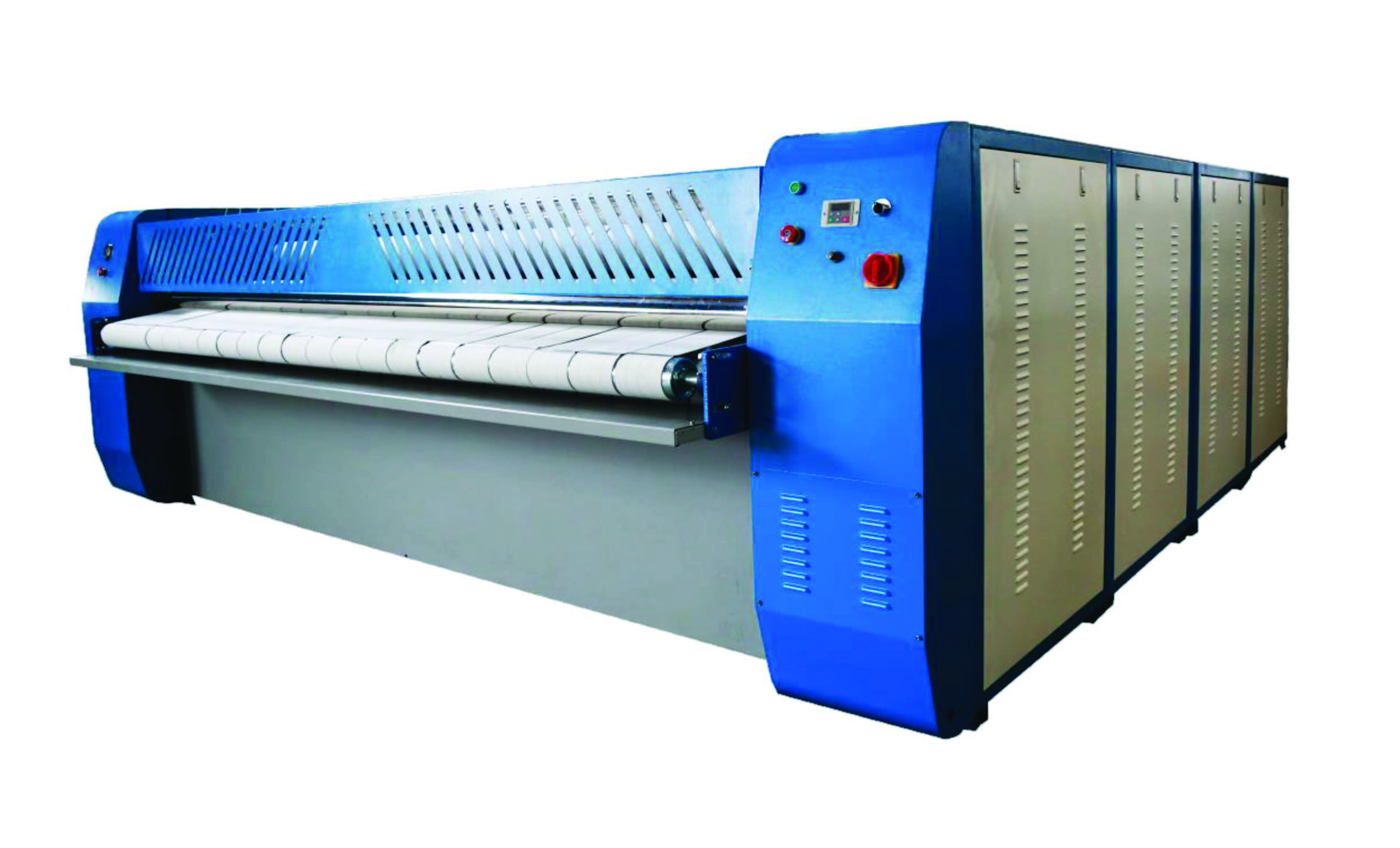 Flatwork Ironer, 800 mm Diameter Roll, 2800 mm Working Width, 2-Roll PLC Control, Safety Guard and 3 Emergency Stop Buttons