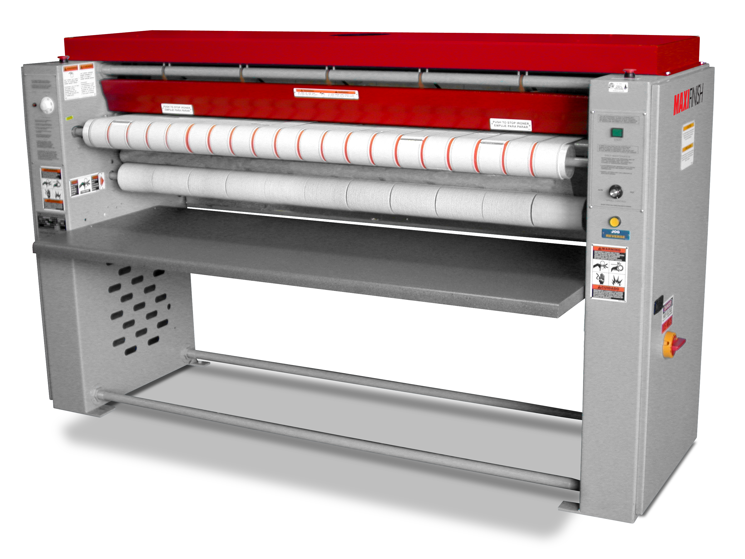 Flatwork Ironer, 14 Inch Diameter Cylinder, 66 Inch Width, AC Frequency Variable Speed Drive with Jog Reverse, Full Exhaust Canopy and Blower, Available in Gas and Electric Heating