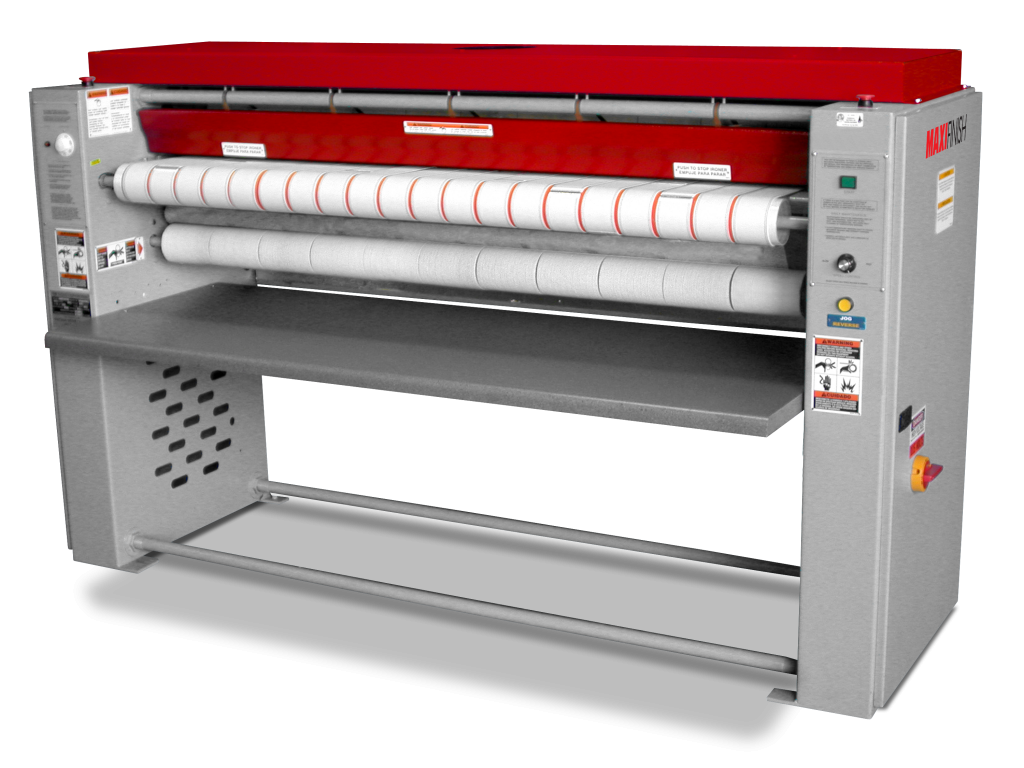 Flatwork Ironer, 12-3/4 Inch Diameter Cylinder, 48 Inch Working Width, Compression Roll, Complete Stop Buttons and Full Width Stop Bar, Input Feed Conveyor and Full Exhaust Canopy, Available in Gas and Electric Heating